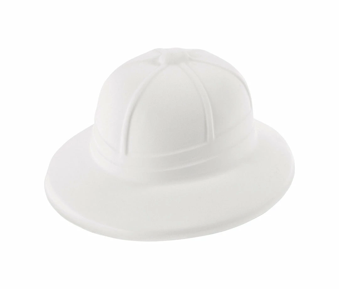 A budget style flocked safari, pith helmet, made of plastic with a flocked covering.