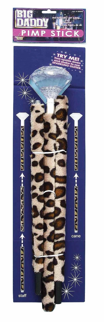 Our Leopard print Pimp Cane with a diamond top handle is perfect for the 70’s Pimp look.