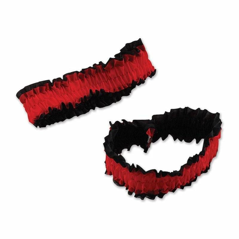 Includes 1 pair of red garters with black lace.