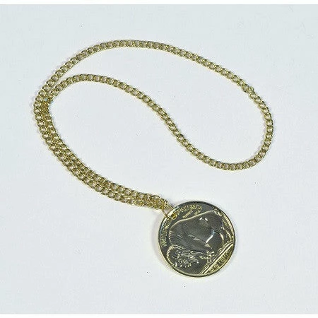 This gold medallion on a gold chain is the perfect accessory to complete your 70s look, as well as any rapper of ganster costume.