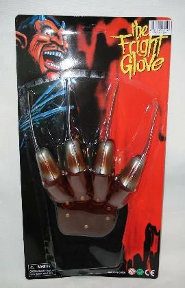 Give them a real fright this halloween with this Right hand glove with plastic claws/blades on the fingers. Great accessory for a Freddy Krueger outfit! Great for movie outfits, stag nights or halloween fancy dress