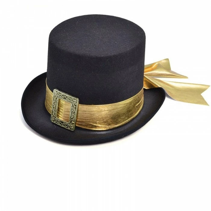Give yourself a more elegant finish to your costume with our Black Top hat with Gold Band