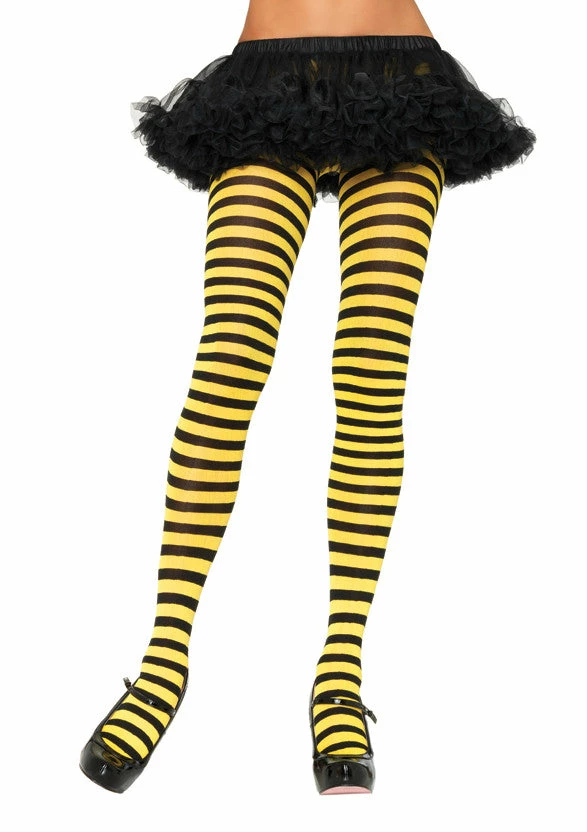 Our Leg Avenue, Black and Yellow Striped Nylon Tights are great to add a touch of glamour to your costume. One size.