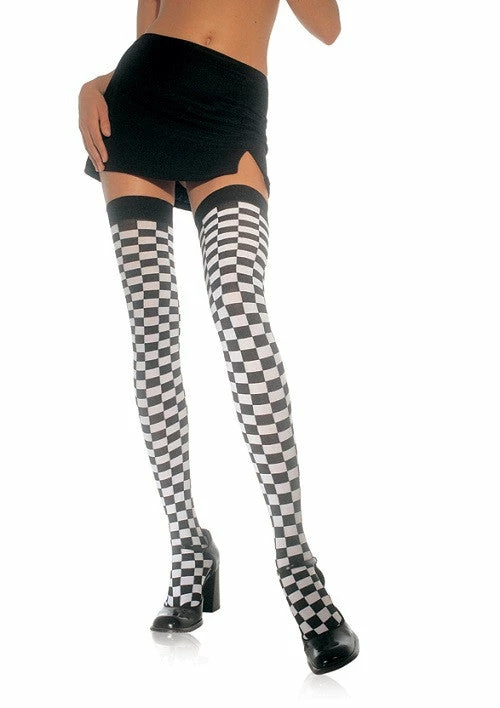 Our Leg Avenue, Checkerboard Nylon Thigh Highs are great to add a touch of glamour to your costume. One size.