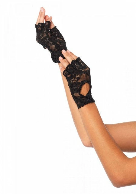 Leg Ave, Lace Keyhole Fingerless Gloves, Black
