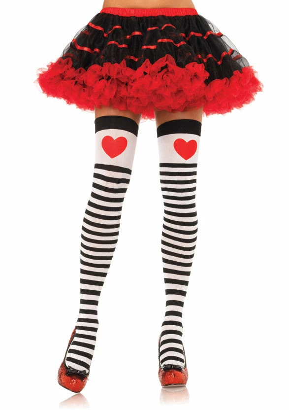 Our Leg Avenue, Black and White Nylon stockings with heart are great to add a touch of glamour to your costume. One size.
