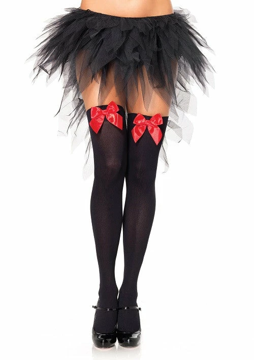 Nylon Thigh Highs, Black with Red Bows