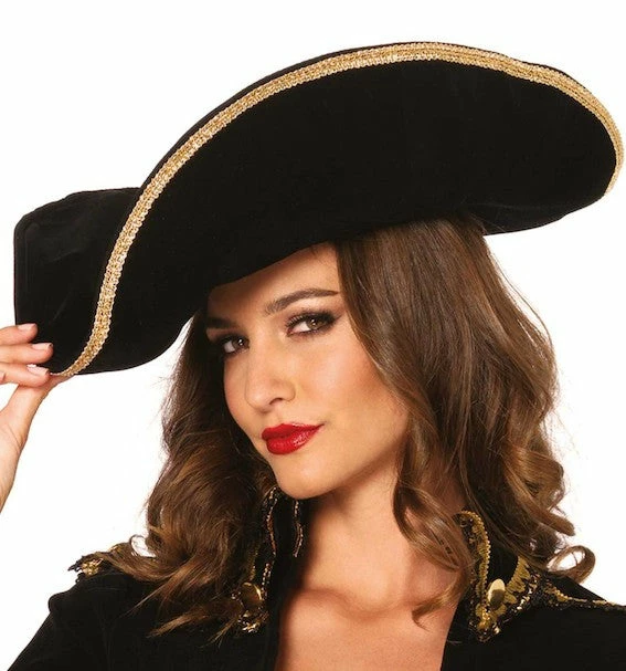 Our Leg Avenue, Pirate Hat with Gold Trim will add the finishing touch to many Pirate Costumes.