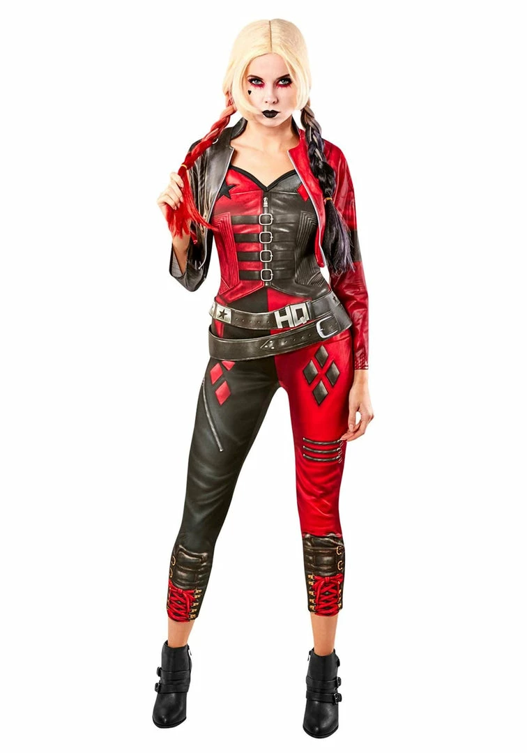 Become Harley Quinn, one of the lead characters in Suicide Squad 2 (2021). Fans of the classic DC media will recognise the jumpsuit and jacket combination is emblematic of her original comic book and animated TV show look, that itself is inspired by jesters, with a black and red tile design throughout. Despite this, it has been updated for the latest DC film following a band of misfits and now has a biker aesthetic with a slogan emblazoned across the back of the jacket. The bodysuit also resembles body armour and is more practical, making it the perfect outfit to wear when destroying all mention of Project Starfish.