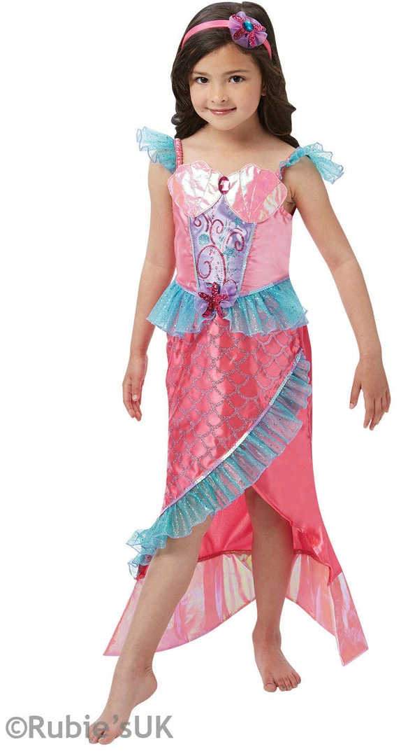 With shimmering details and lacy fringes, starfish motifs about her waist and in her hair, everyone hopes to meet the mermaid princess!