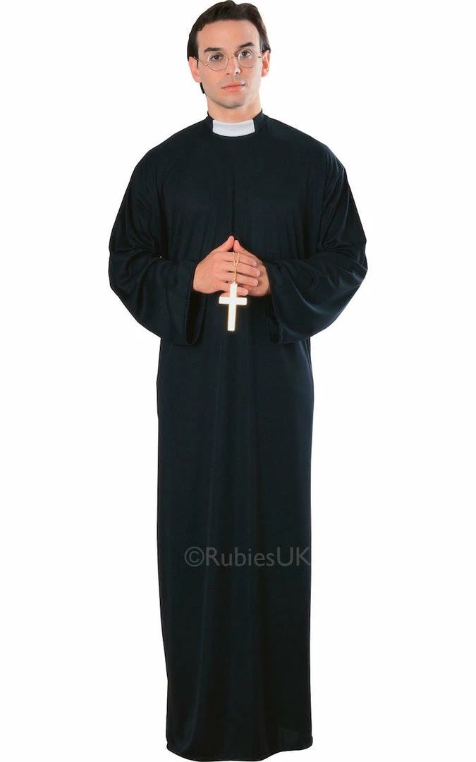 Includes a black robe with clerical collar.