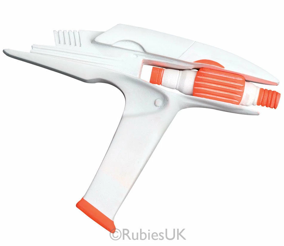 This Star Trek phaser gun is white and orange measures approximately 9″ in length. Perfect to complete your Star Trek or Alien costume.