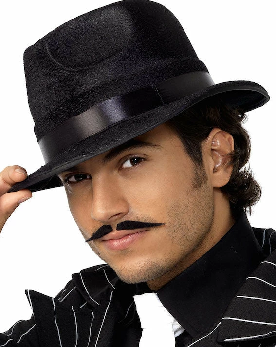Our Black, Indestructible Fedora Hat Black with Silk Band is perfect for the Gangster look.