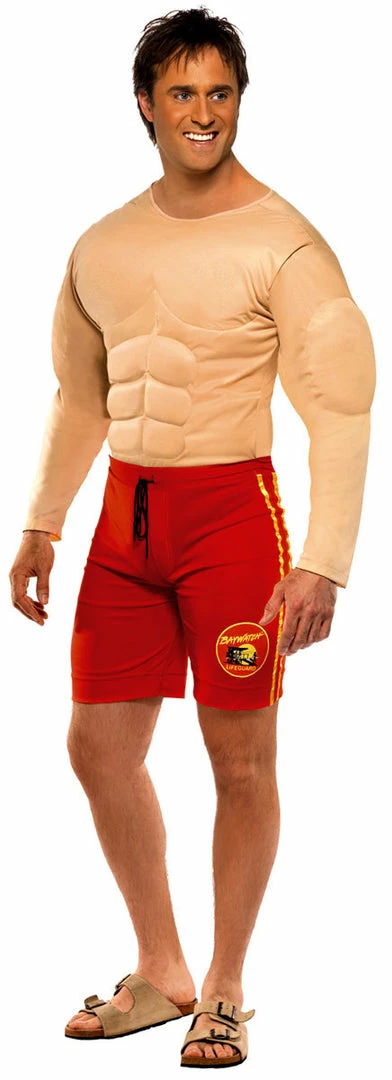 Get the muscles you have always wanted with our Baywatch Lifeguard Costume with muscle chest and attached Shorts.