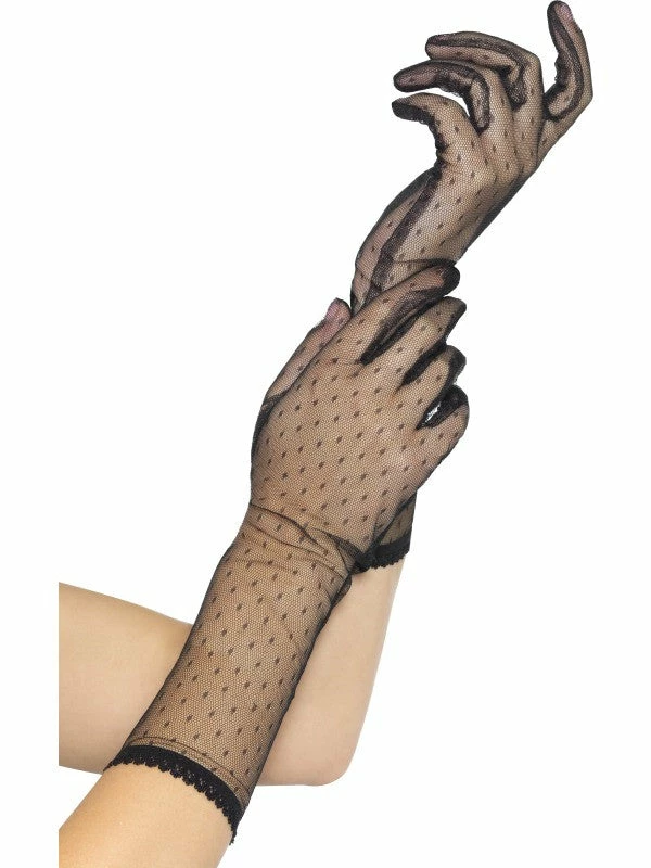 These lace gloves are perfect for adding a touch of elegance to any costume! Also available in cream.