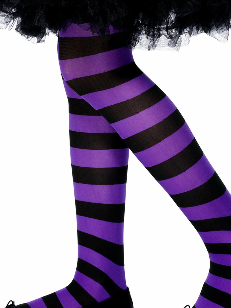 Children’s Striped Purple And Black Tights, perfect to finish your halloween costume.