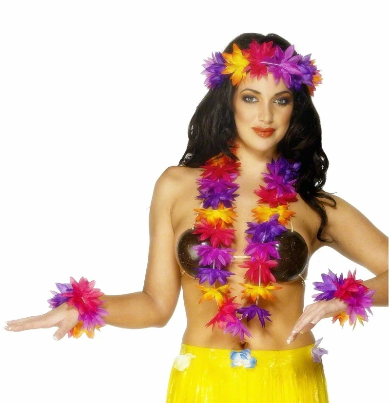Includes head piece, 2 bracelets and a neck garland.