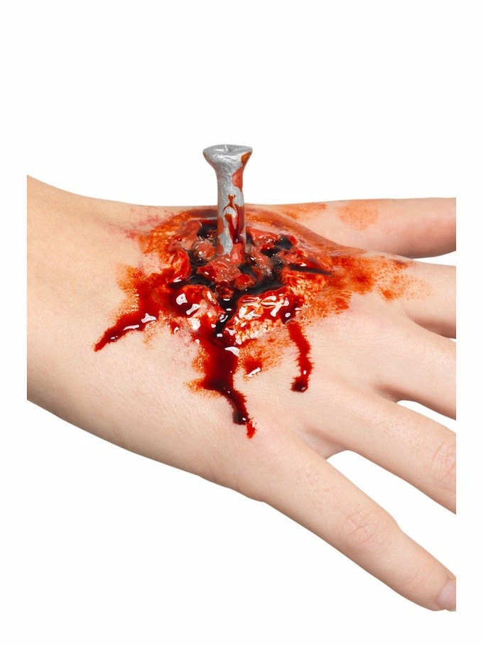 Our Latex, Flesh Coloured Nail Wound Prosthetic is realistic and very effective, perfect for Halloween.