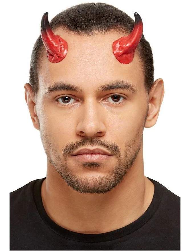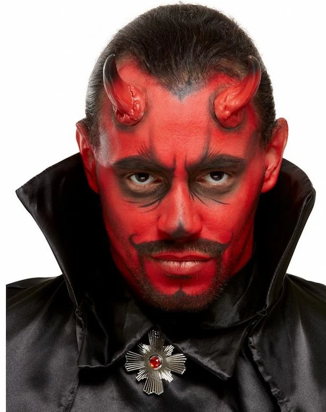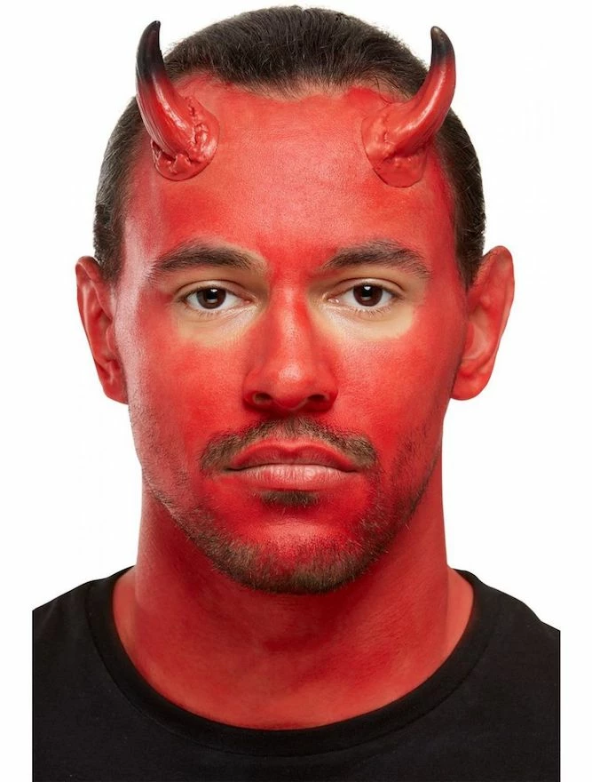 Our Devil Make Up Kit includes Red & Black Facepaints, Horns, Sponge & Applicator
