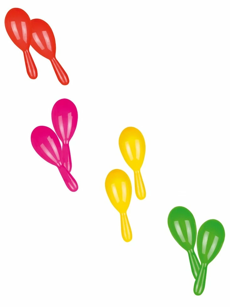 Pair of plastic maracas perfect to complete any Hawaiian or Mexican costume. Comes in assorted, neon colours, Pink, Yellow, Green, Purple and Orange.
