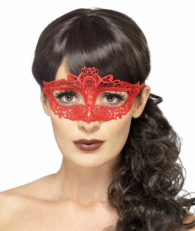 Our red embroidered lace Floral design, filigree masquerade mask is perfect for any masked ball.