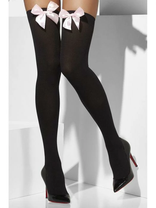 Our Opaque, Black Hold Ups with Pink Bows will add that finishing touch to your costume.