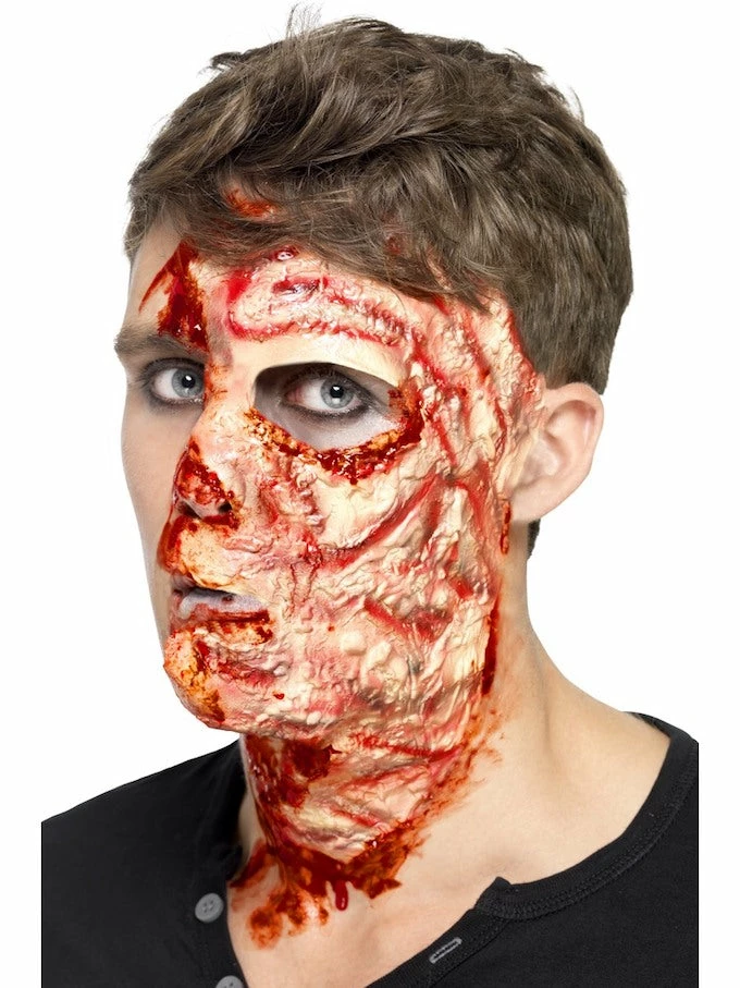 Our Latex, Flesh Coloured Burnt Face Prosthetic is realistic and very effective, perfect for Halloween.