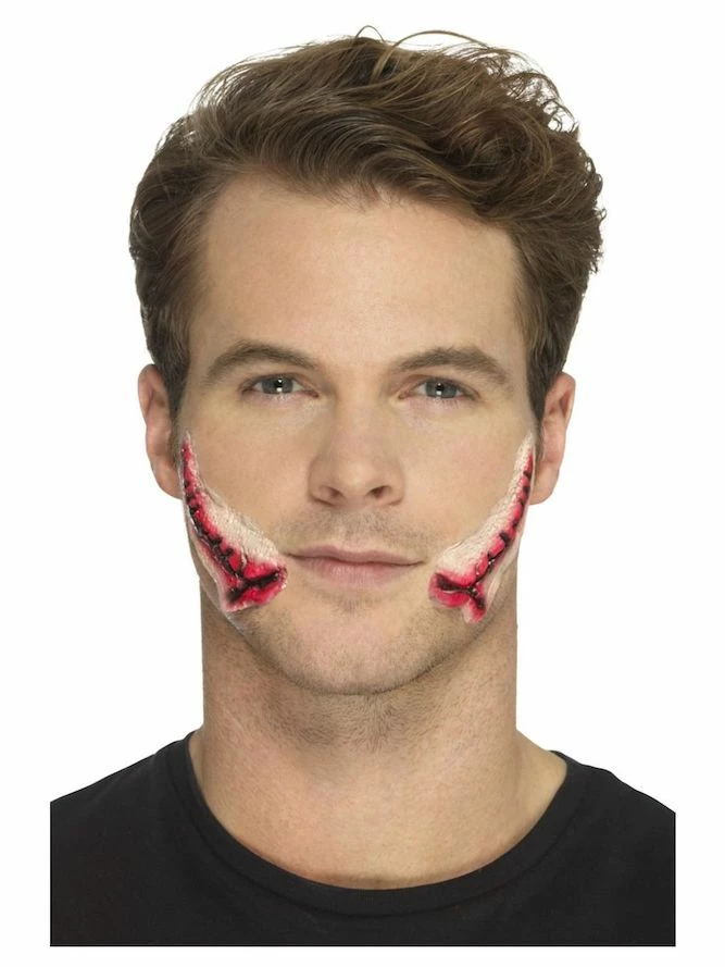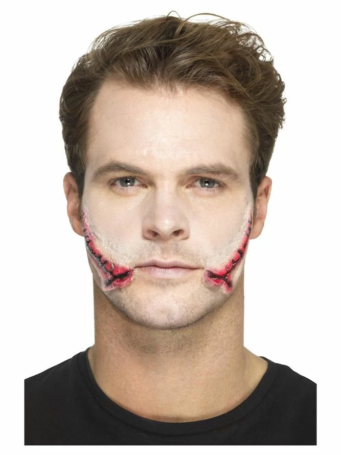 Our Latex, Stitched Smile Prosthetic is realistic and very effective, perfect for Halloween.