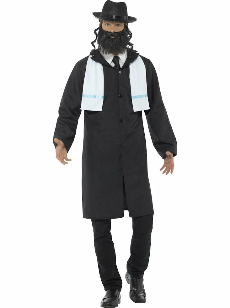 Our Rabbi Costume includes a Jacket, Scarf, Hat and Beard.