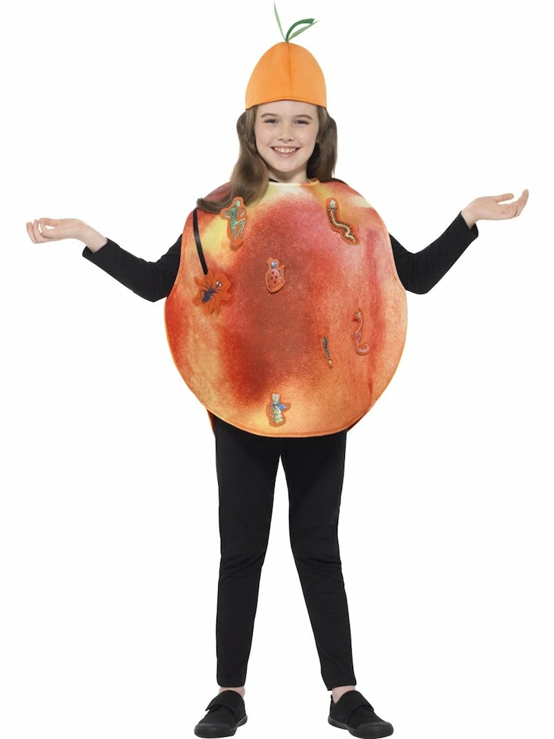 Our James & the Giant Peach Costume includes an orange foam tabard with printed insects attached with velcro tabs, plus a matching hat.