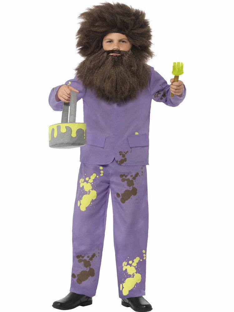 Our Mr Twit costume includes a purple jacket and trousers with green and brown paint splatters, plus a soft paint pot and paint brush and the all important wig and beard.