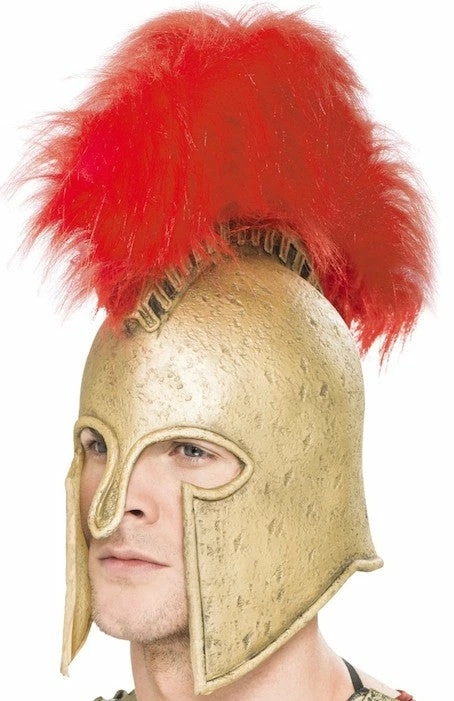 Our Roman Armour, Soldiers Helmet is a Gold Rubber Helmet with Red Pelmet and will add that touch of class to any Roman Costume.