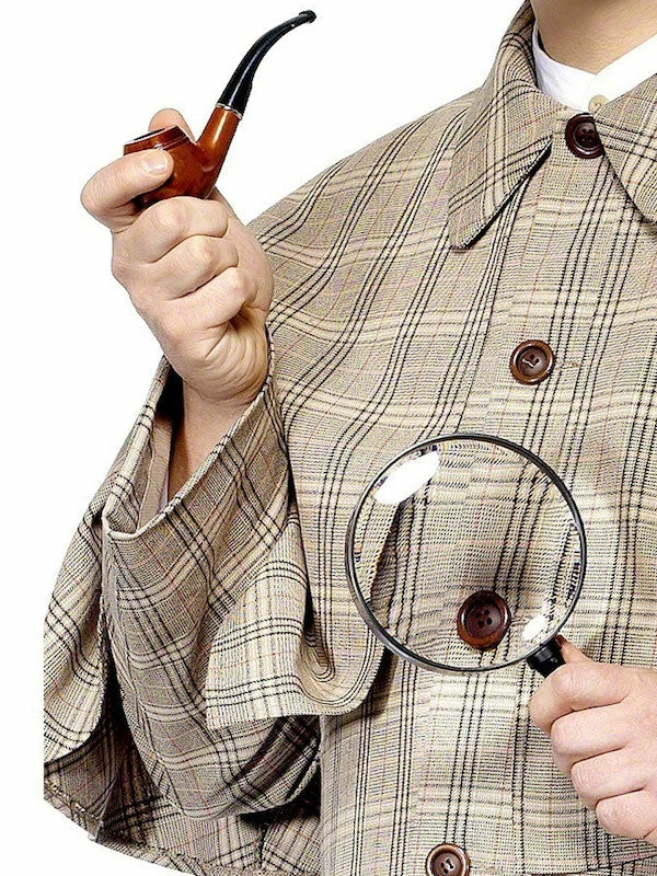 Included in this fancy dress kit is a pipe and magnifying glass.