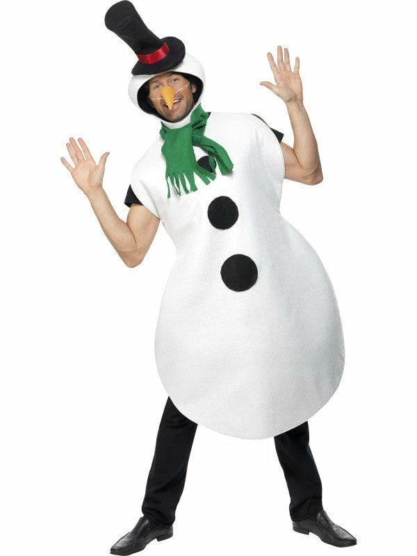 Our Snowman costume includes a bodysuit, scarf, hat and carrot nose.