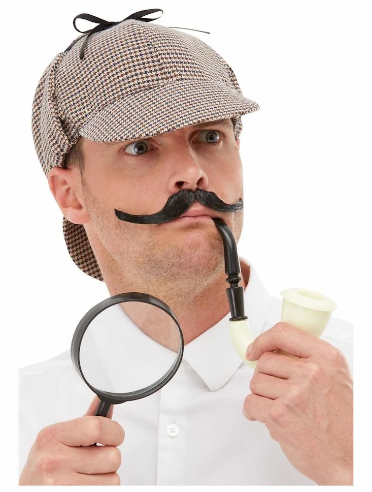 Our Shelock Holmes, Detective Kit includes the Hat, Pipe and Magnifying Glass.
