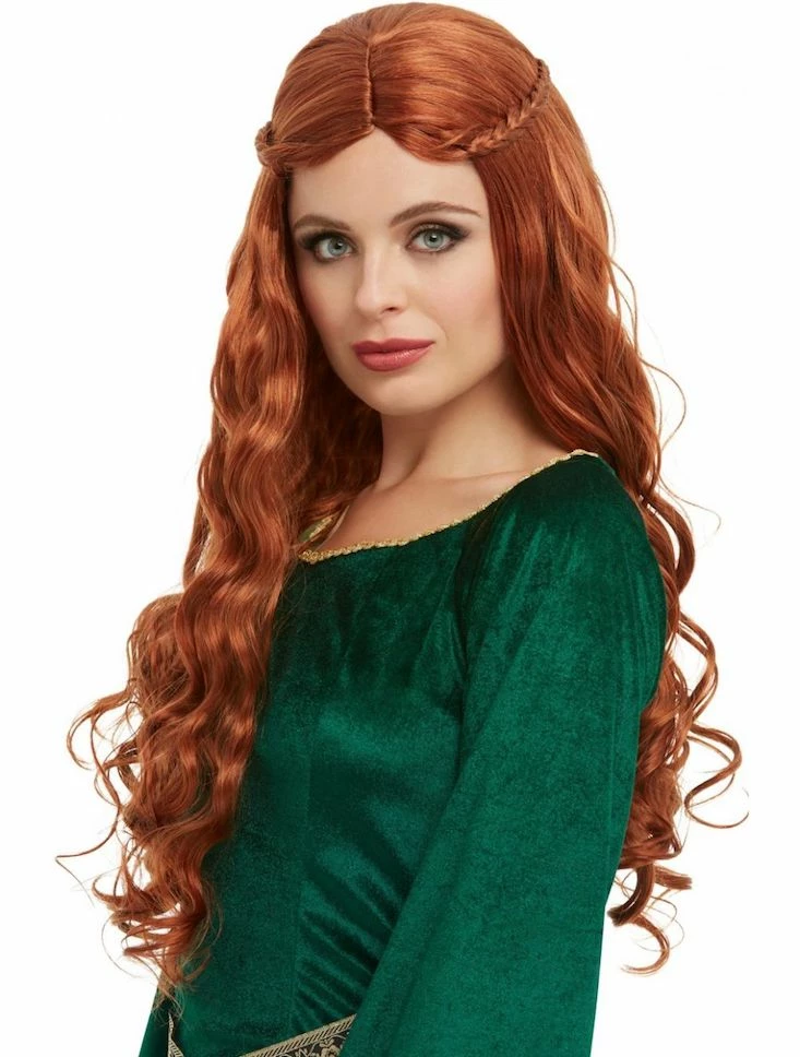 Our Auburn, Medieval Dragon Goddess Wig is perfect to complete many historical costumes.