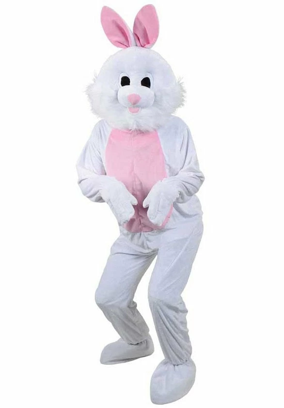 Our White Easter Bunny Mascot includes head and jumpsuit with attached shoe and hand covers.