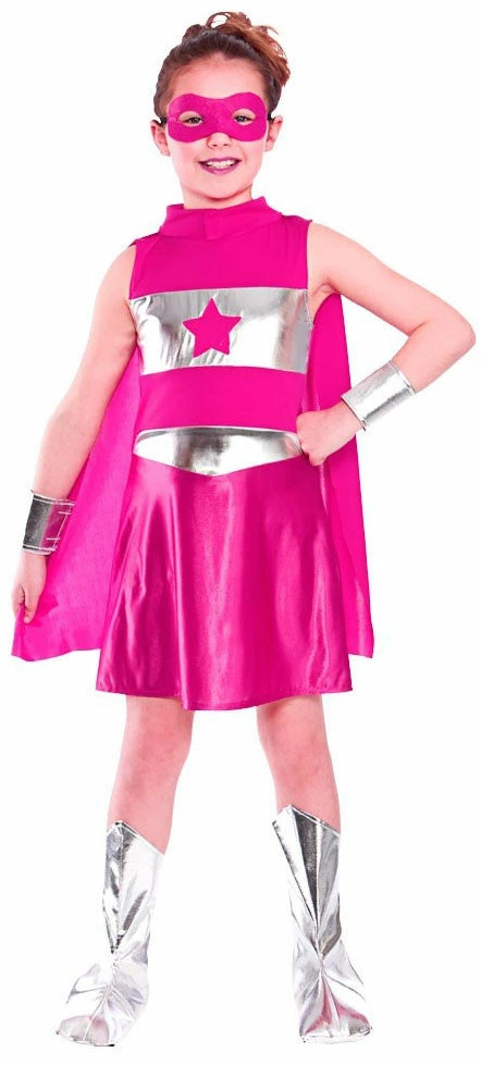 Our Super Hero costume in pink will help you fight crime and still look cute and girly!