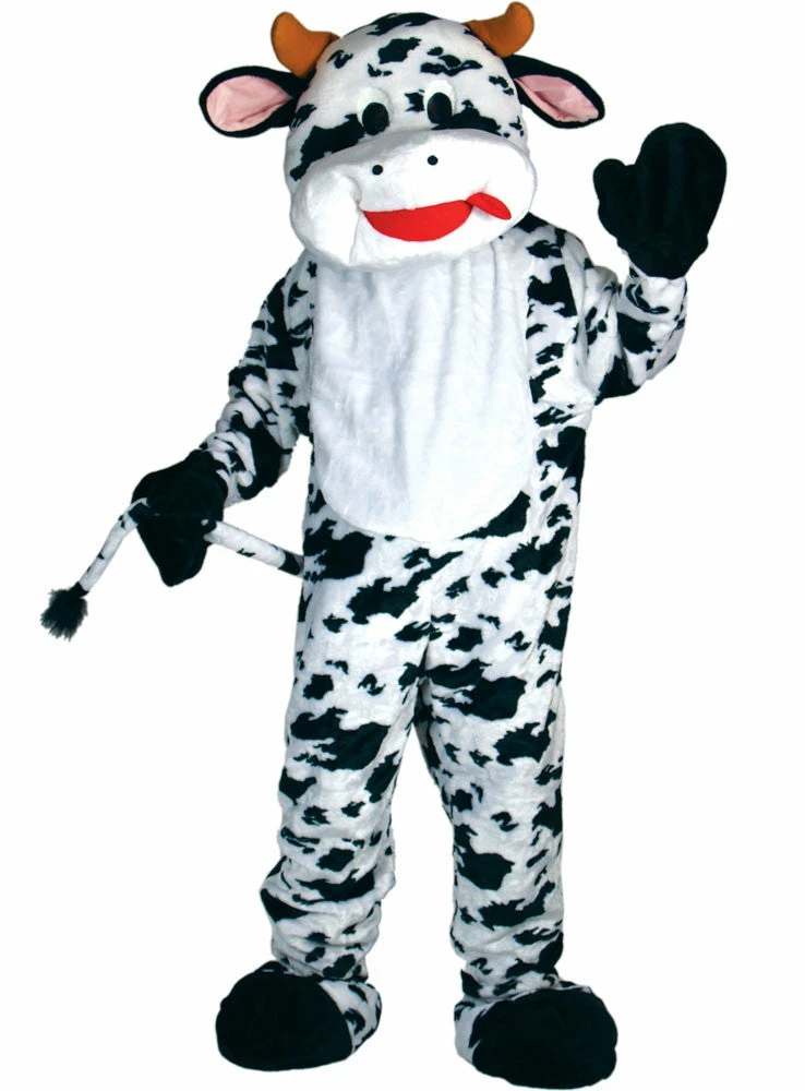 Our Deluxe Cow Mascot includes a giant head, plush jumpsuit with attached hands & shoe covers with rubber grip soles.