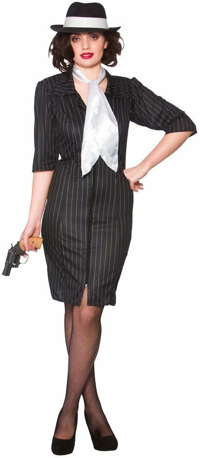Our Gangster Gal costume comes complete with dress and necktie.