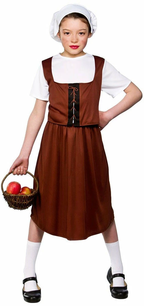 Our Tudor Girl costume comes complete with top with attached waistcoat, skirt and tudor hat
