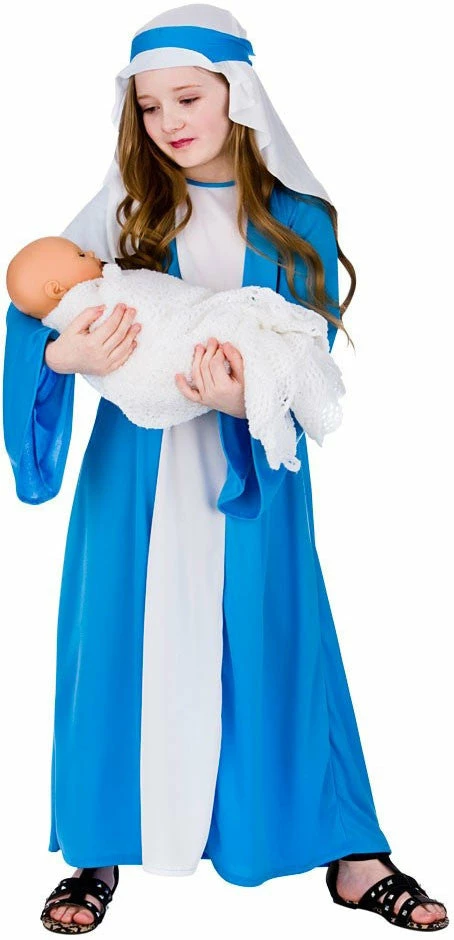 Our Mary costume is perfect for any nativity play and includes a blue and white dress and headpiece.