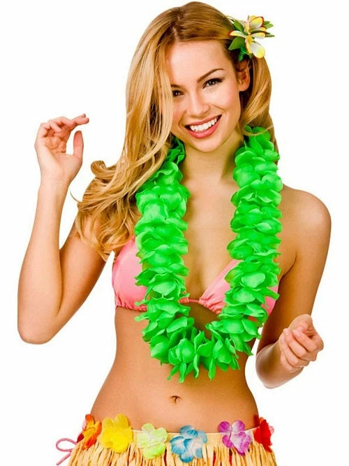 Add the finishing touch to your Hawaiian look with our Petal Lei in Green. Also available in Orange, Yellow, Red, Royal Blue and Hot Pink.