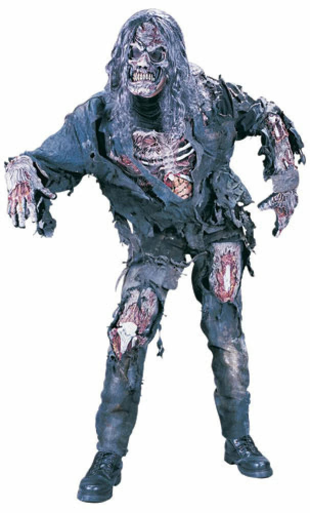 Our complete Zombie costume is the perfect halloween costume – includes pants and shirt with sewn-in body parts, gloves and mask with wig.